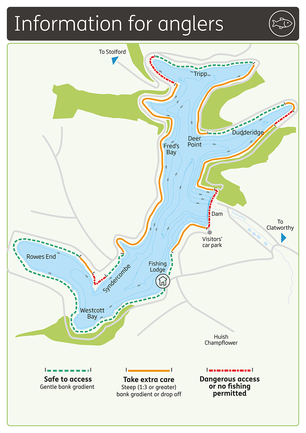 The reservoir offers some of the best fly fishing in the West Country. The temperature of the water can stay low into early summer, so it continues to fish well throughout the season.